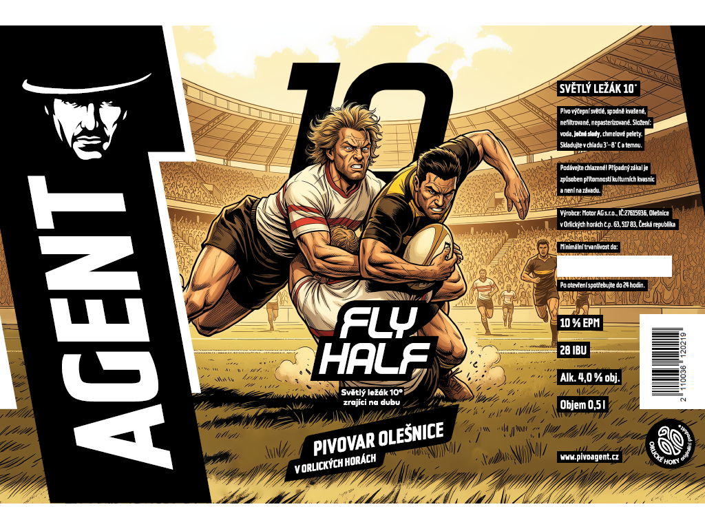 Etiketa Fly Half - Světlý ležák 10° zrající na dubu - etiketa na plechovku 0,5l